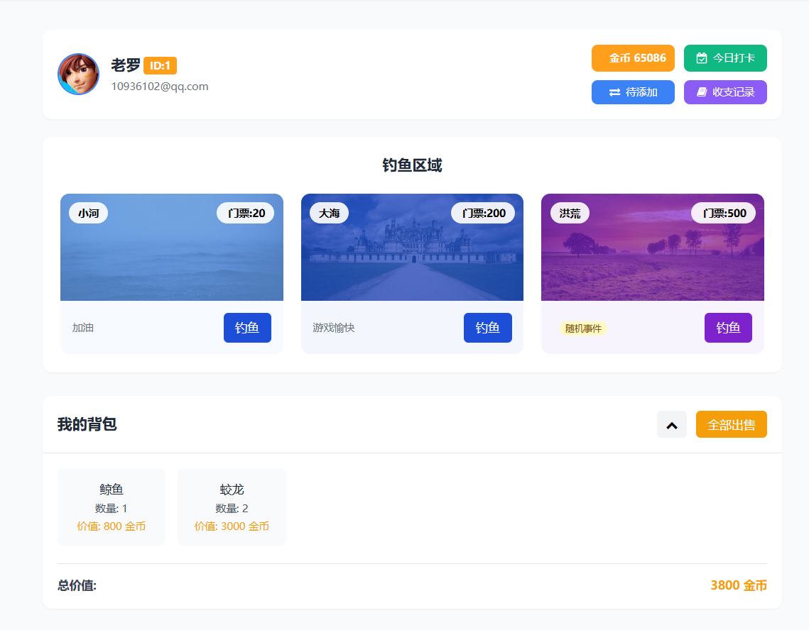 平时去户外钓鱼,台风天周末参考李同学的钓鱼游戏,做了一个简单的钓鱼网页。
